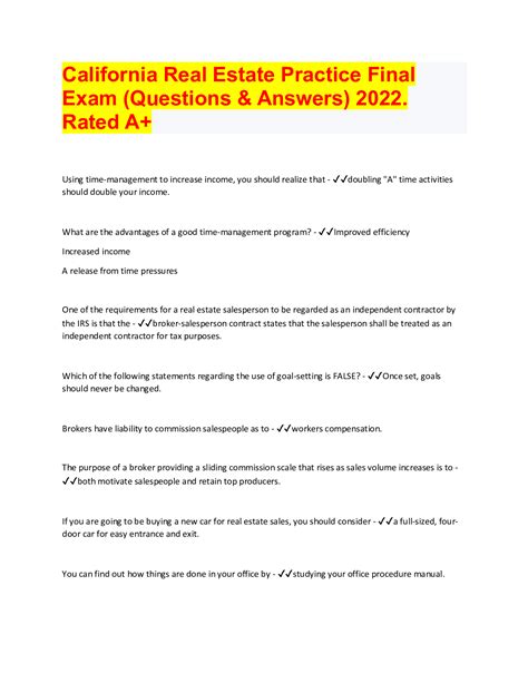 [UniqueID] - Read Online CALIFORNIA REAL ESTATE PRACTICE FINAL EXAM Hardcover